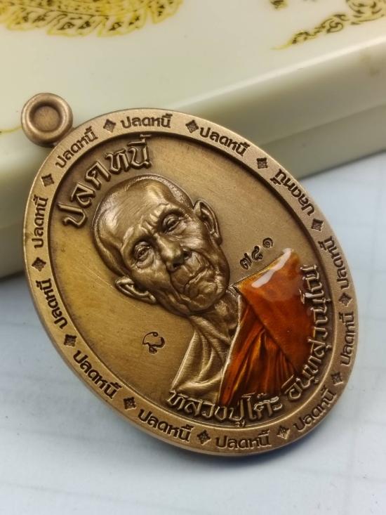 เหรียญ รุ่นรวยปลดหนี้ เนื้อทองแดงซาติน ลงยาจีวร หมายเลข 781 หลวงปู่โต๊ะ วัดถ้ำสิงโตทอง จ.ราชบุรี พร้อมกล่อง |