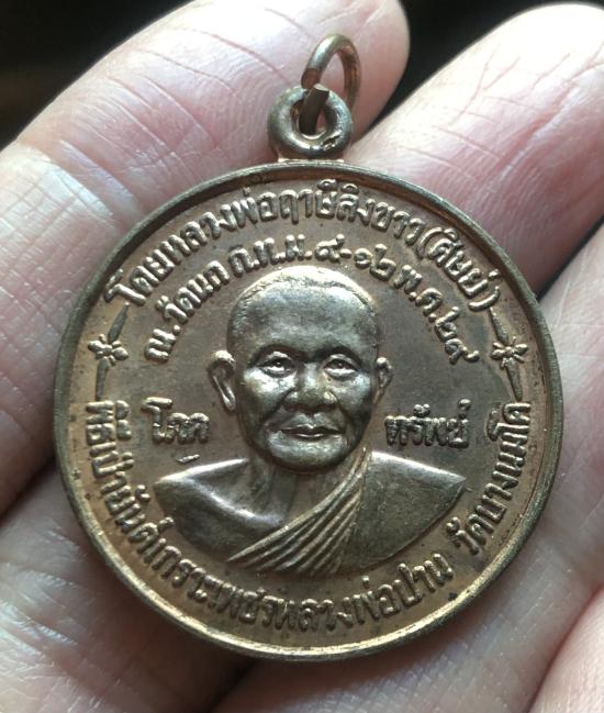 เหรียญโภคทรัพย์ หลวงพ่อปาน วัดบางนมโค หลังยันต์เกาะเพชร หลวงพ่อฤาษีลิงขาว ปลุกเศก วัดนก กทม.ปี 2529 |