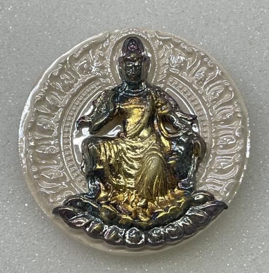 เสวยสุข/เนื้อดินเผาเคลือบมุกหน้ากากทองขนาด5.0ซม