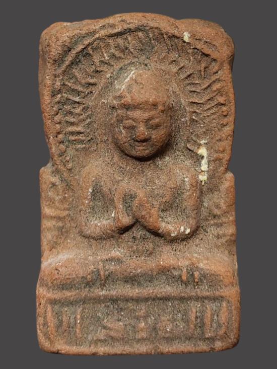 A8341.พระปางดีดน้ำมนต์เนื้อดิน ไม่ทราบที่ เคาะเดียวเเดง