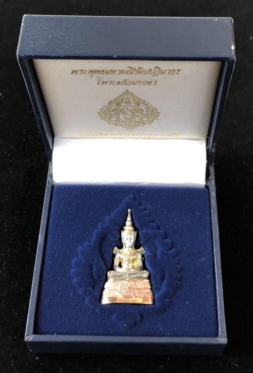 พระแก้วมรกต กรมสรรพสามิต ( เนื้อเงินสามกษัตริย์ ) ตอกโค๊ต+หมายเลข 87710 ปี 2539 สภาพสวย มาพร้อมกล่องเดิมครับ