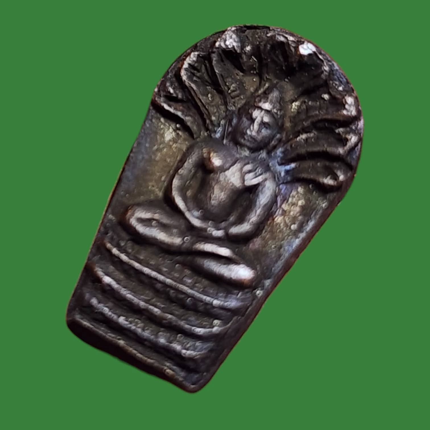 พระนาคปรกใบมะขาม หลวงปู่เม้า วัดสี่เหลี่ยม รุ่นแรก พ.ศ. 2517 สภาพสวยตามรูป |