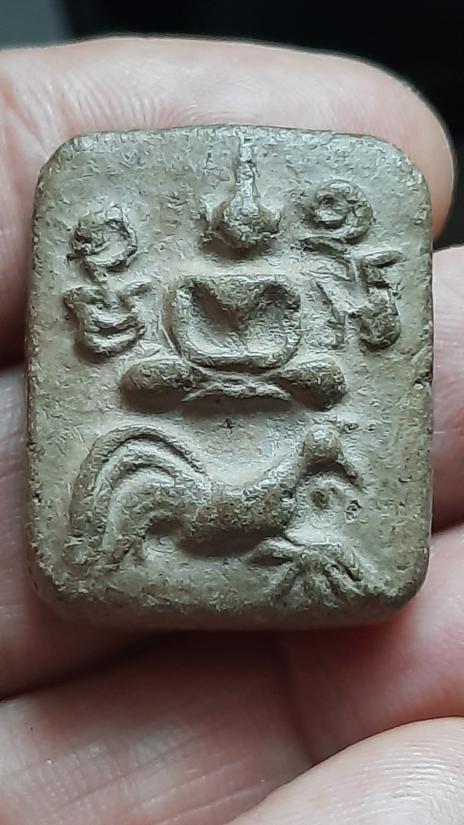 พระพิมพ์พระพุทธเจ้าทรงไก่(ขี่ไก่) หลวงพ่อปาน เนื้อดินเผา อุดผง ไม่ทราบที่ |