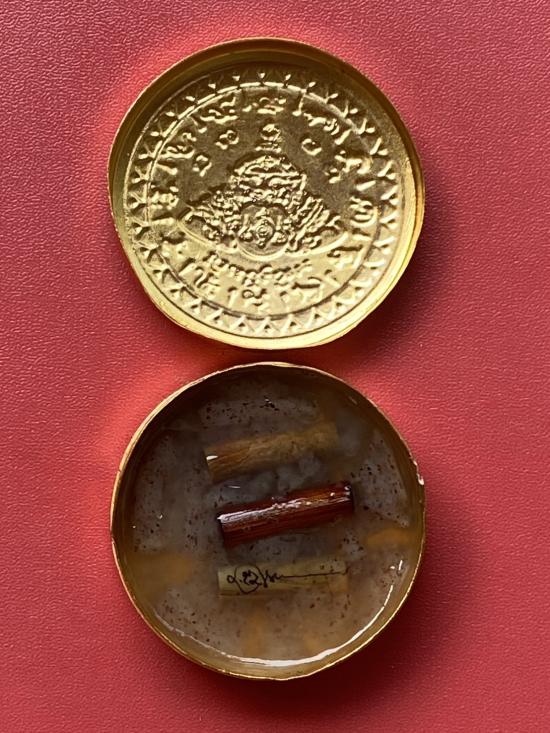 เคาะเดียวแดง สีผึ้งพระราหู รุ่น มงคลจักรวาล เนื้อ โลหะชุบทองลงยาสีดำขอบสีแดง ขนาด5ซม |