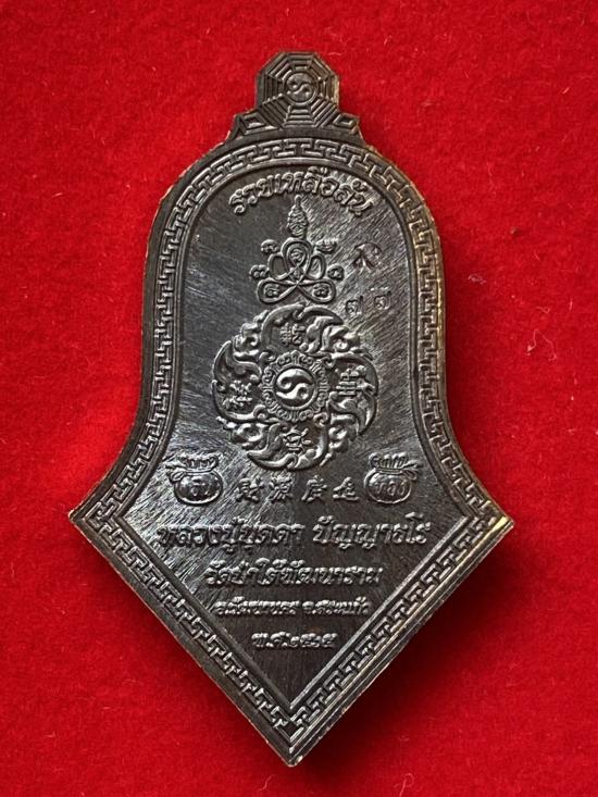 เคาะเดียวแดง หลวงปู่บุดดา ท้าวเวส รุ่น รวยเหลือล้น เนื้อ นวะโบราณ หน้ากากเงินลงยาขอบแดง |