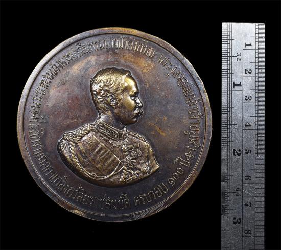 เหรียญขนาด 7 เซน รัชกาลที่ 5 ที่ระลึกงานเถลิงถวัลยราชสมบัติ ครบรอบ 100 ปี พร้อมกล่องเดิม |