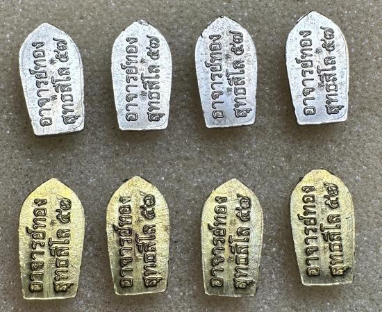 หลวงพ่อทอง วัดบ้านไร่ ปรกใบมะขามรุ่นแรก เนื้ออัลปาก้า 4 องค์ เนื้อฝาบาตร 4 องค์ โค๊ต ท 2 ตัว ชุดทองคำ ปี 2557 จำนวน 8 องค์ |