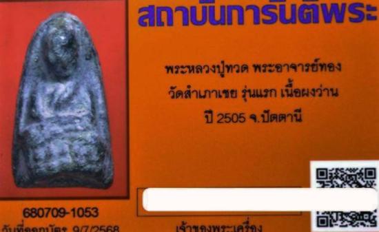 หลวงปู่ทวดอาจารย์ทองรุ่นแรกวัดสำเภาเชยเนื้อว่านพิมพ์พระรอด ปี2505 พร้อมตลับไมคอนอิตาลี่พร้อมใช้องค์นี้มีเส้นเกศา ติดรางวันที่1งานเซียร์รังสิต21-12-2568ที่ผ่านมา |
