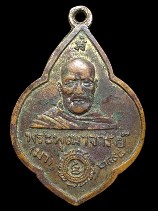 เหรียญพุ่มข้าวบิณฑ์ ท่านเจ้ามา วัดสามปลื้ม ปี 2498 เนื้อกะไหล่ทอง