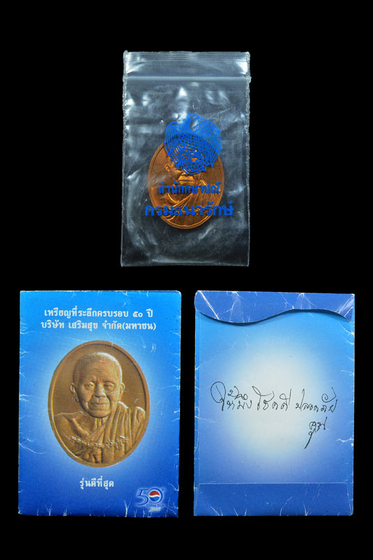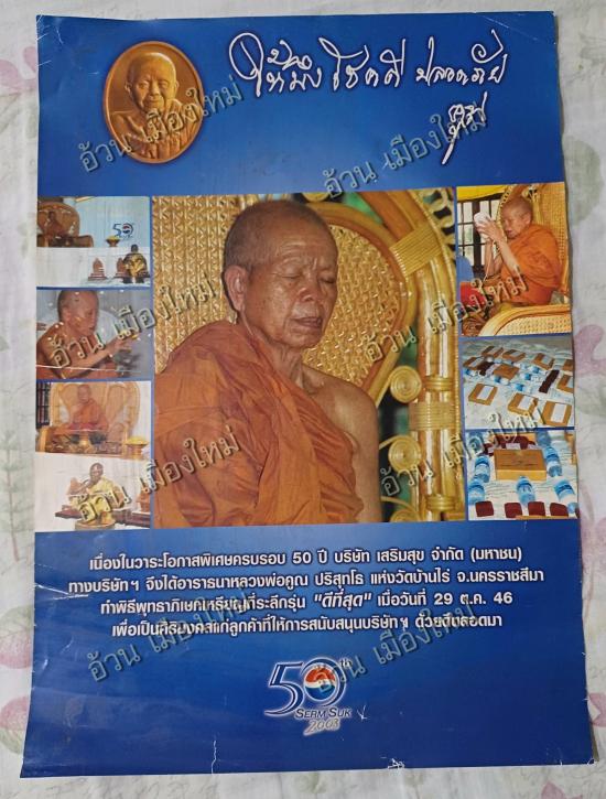 ++วัตถุประสงค์ : เนื่องในวาระโอกาสพิเศษ ครบรอบ 50 ปี บริษัท เสริมสุข จำกัด ( มหาชน ) ในวันที่ 18 มีนาคม พ.ศ.2546 เริ่มดำเนินธุรกิจน้ำอัดลมเมื่อปี พ.ศ.2495 มอบเหรียญหลวงพ่อคูณ เพื่อเป็นสิริมงคลแก่ลูกค้าที่ให้บริการ เพื่อเป็นศริมงคลแก่ลูกค้าที่ให้การสนับสนุนบริษัท ด้วยดีตลอดมา