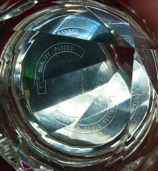 ตัวเรือนทำจากคริสตัลหรือแก้วคุณภาพสูง (เช่น คริสตัล K9) เจียระไนเป็นรูปทรงเพชร ขนาดกว้าง 2.5 นื้ว สุง 1.5 นิ้ว