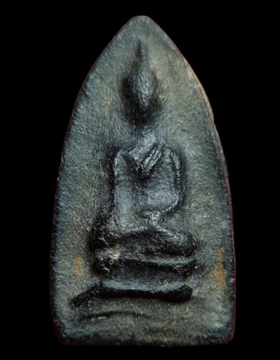 หลวงพ่อกวย พระสรรค์นั่ง สังฆาฏิคู่ ฐานขีด เนื้อดำนิยม พบน้อย |
