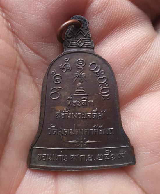 เหรียญระฆังคว่ำ หลวงพ่อผาง จิตฺตคุตฺโต วัดอุดมคงคาคีรีเขต จังหวัดขอนแก่น รุ่นที่ระลึกสร้างพระเจดีย์ สนปี 2519 |