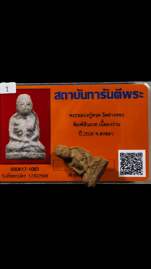 วัดใจ หลวงพ่อทวดหัวมวย วัดอ่างทอง เนื้อผงว่าน ปี 06 จ.สงขลา พร้อมบัตรรับรอง |