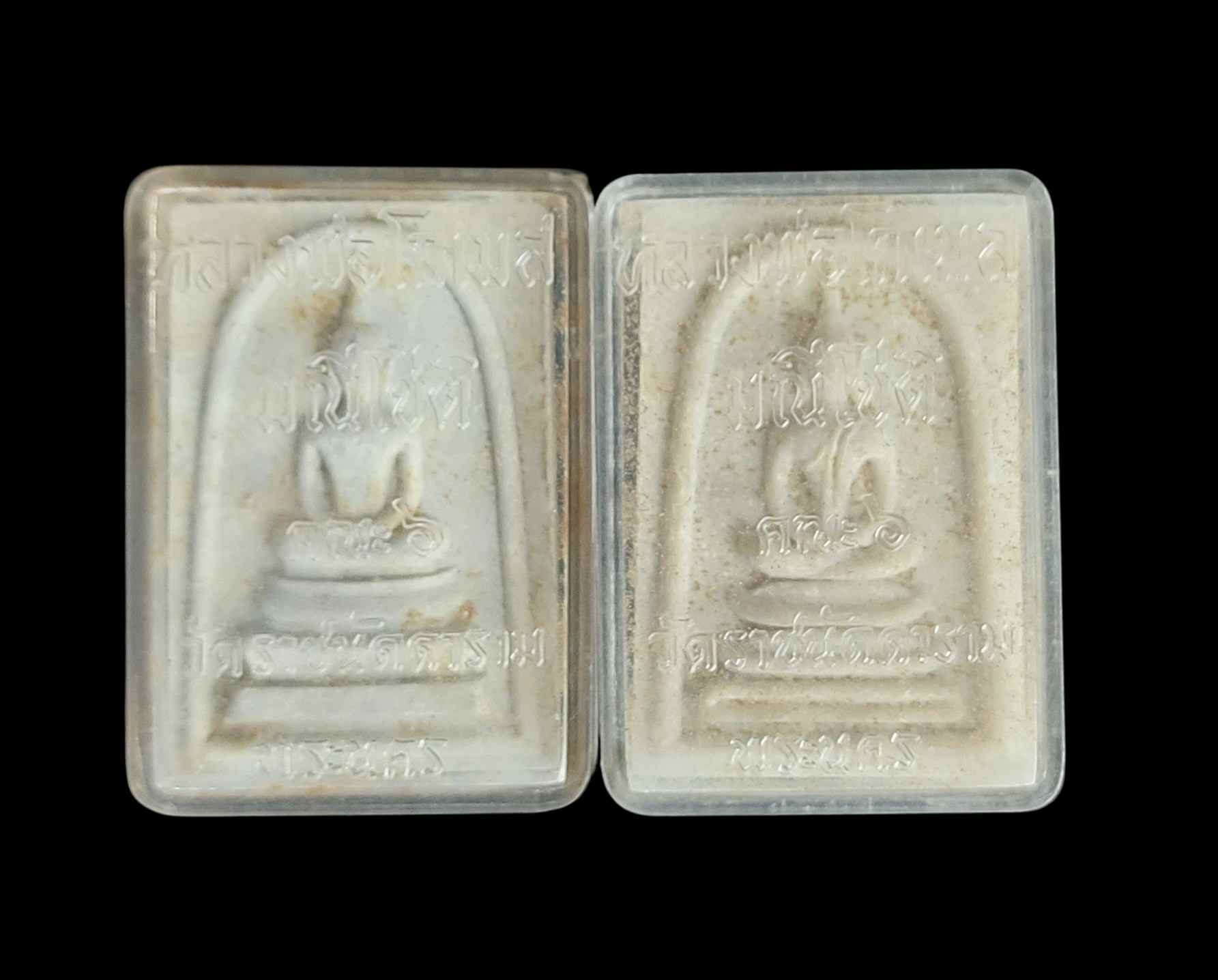 วัดใจเคาะเดียวแดง จำนวน 2องค์ พระสมเด็จพระมหาโกเมสมณีโชติ วัดราชนัดดา ปี 2512 เนื้อผง (หลวงพ่อกวย ปลุกเสก) กรุงเทพฯ กล่องเดิม |