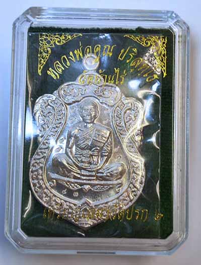 เหรียญรุ่นเสมาวัดปรก 2 เนื้อเงินตอก 9 รอบ หลังแบบ หมายเลข 83 ผิวกระจก สวยพร้อมกล่องเดิม
