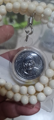 เหรียญอายุวัฒนมงคล 80 ปี เนื้อตะกั่ว(มีค่าดั่งทองคำ)หลวงตาม้า วัดถ้ำเมืองนะ พร้อมรอยจารหลวงตาม้า เลี่ยมจากวัดพร้อมประคำ