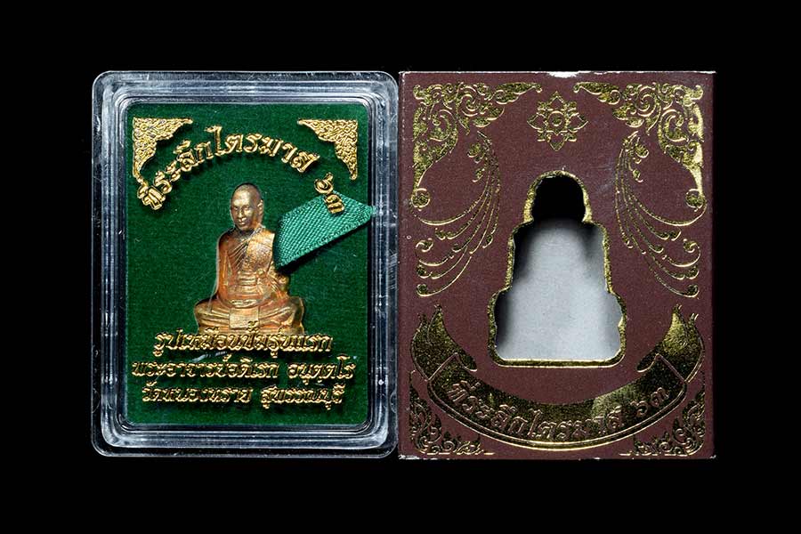 วัดใจเคาะเดียวแดง รูปเหมือนปั๊มรุ่นแรกอุดกริ่ง เนื้อฝาบาตรกะหลั่ยทอง พระอาจารย์ดิเรก วัดหนองทราย สุพรรณบุรี |