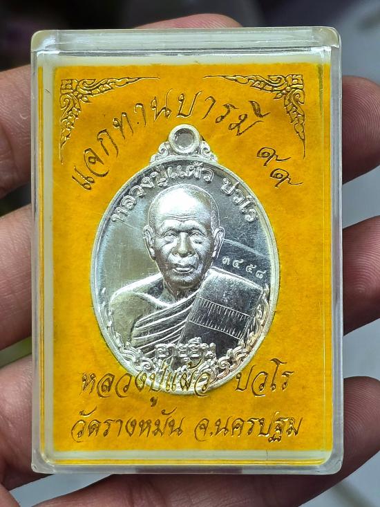 เหรียญหลวงปู่แผ้ว อายุยืน99 เนื้อเงิน เลข3458 สภาพสวยเดิมๆพร้อมกล่อง รับประกันแท้มาตรฐานสากลครับ