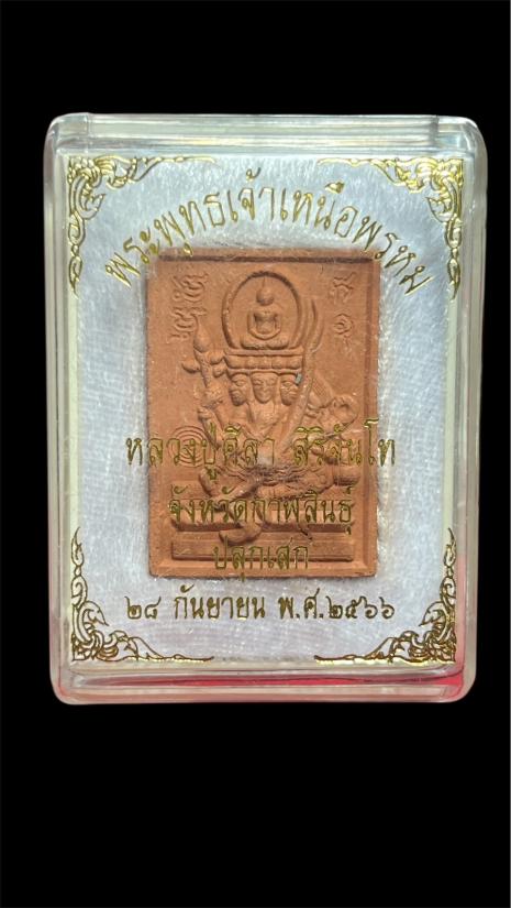เหรียญพระพุทธเจ้าเหนือพรหม เนื้อดินเผา หลวงปู่มหาศิลา สิริจันโท สวนสงฆ์แกเปะ วัดโพธิ์ศรีสะอาด จ.กาฬสินธุ์ ปี2566 |