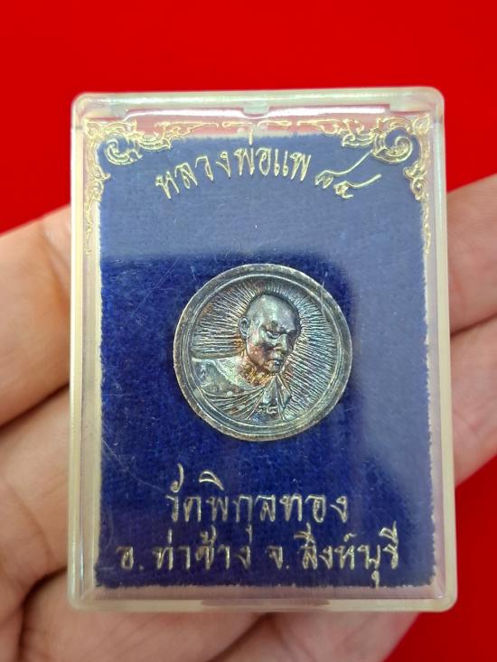 หลวงพ่อแพ วัดพิกุลทอง เหรียญหล่อล้อแม็ค เนื้อเงิน อายุ 84 ปี กล่องเดิม หมายเลข 7.21 กรัม |
