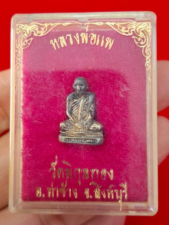 รูปหล่อ หลวงพ่อแพ วัดพิกุลทอง อายุ 87 ปี ออกปี 2534 เนื้อเงิน อุดกริ่ง กล่องเดิม หนัก 4.28 กรัม