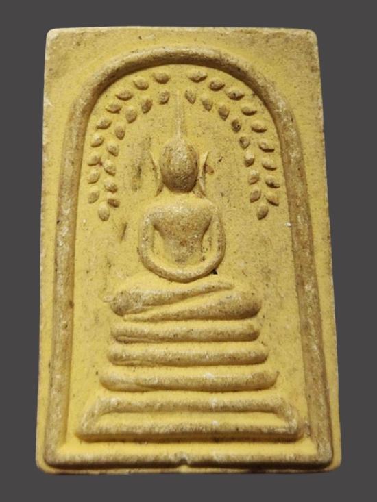 A8353.พระสมเด็จปรกโพธิ์ เนื้อผงเหลือง หลังยันต์ ๕ ไม่ทราบที่ เคาะเดียวเเดง