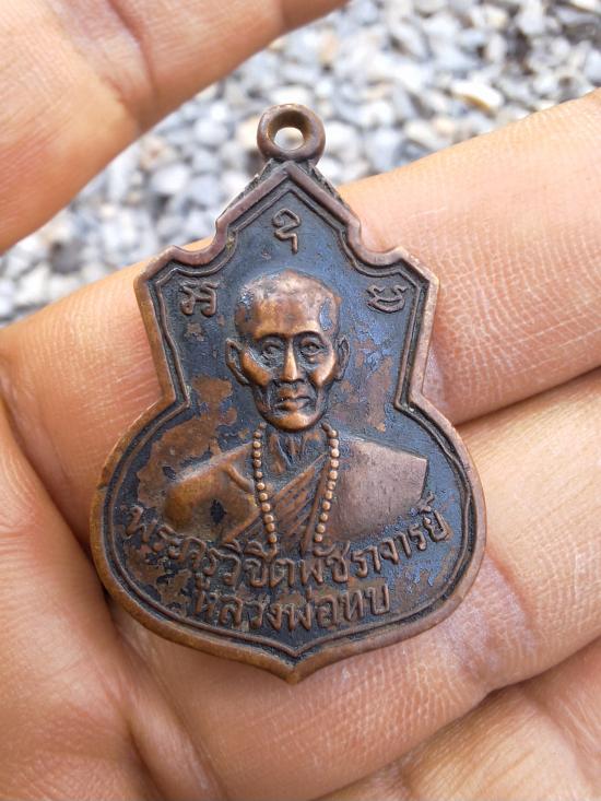 ชื่อพระเครื่อง เหรียญน้ำเต้าหลวงพ่อทบ วัดช้างเผือกปี17 เนื้อทองแดงรมดำ บล็อคขอบ3ยักนิยม