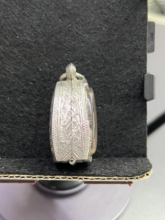 ตลับเงิน มือสอง ใส่พระรูปหล่อหลวงพ่อเงิน หรือใกล้เคียง สภาพสมบูรณ์ ใครหาอยู่ไม่ผิดหวังครับ ขนาดหน้าจอ กว้าง 19mm สูง 26mm หนา 12mm หนัง 16.07 กรัม |