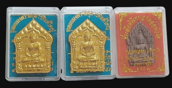 พร้อมกันทีเดียว 3 องค์ครับ ขุนแผนผงพรายกุมารพิมพ์ใหญ่ กรรมการหน้าทองตะกรุดเงิน 2 ดอก +ขุนแผนผงพรายกุมารพิมพ์ใหญ่ กรรมการหน้าทองตะะกรุดทองแดง 2 ดอก รุ่นเมตตามหานิยม หลวงพ่อคูณ วัดบ้านไร่ ปี2557 พระมีประสบการณ์ + ขุนแผนหลวงพ่อคูณ ปริสุทฺโธ รุ่น เททองหล่อหัวใจ วัด บุไผ (วัดบ้านไร่ 2) หลังหน้ากากหลวงพ่อฝังตะกรุด 3 กษัตริย์ ปี2561 พร้อมกล่องเดิม (หลวงพ่อทอง ปลุกเสก)