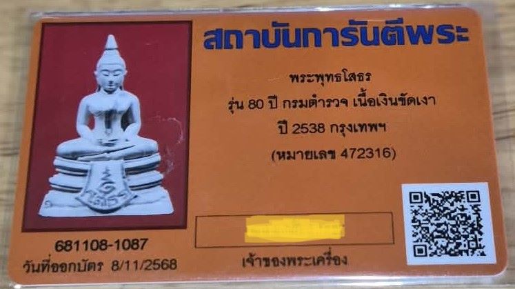 พระพุทธโสธร รุ่น 80 ปีกรมตำรวจ เนื้อเงินขัดเงา พร้อมบัตร