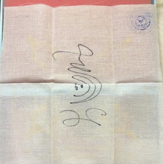 หลวงพ่อชำนาญ ผ้ายันต์พรหมสี่หน้า งานเป่ายันต์พรหมสี่หน้าครั้งที่ 9 ประจำปี พ.ศ.๒๕๕๒ มีจาร ขนาดประมาณ9*9นิ้ว ปั้มตราวัดตอกเลขทุกผืน สภาพเดิมๆ |