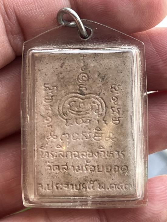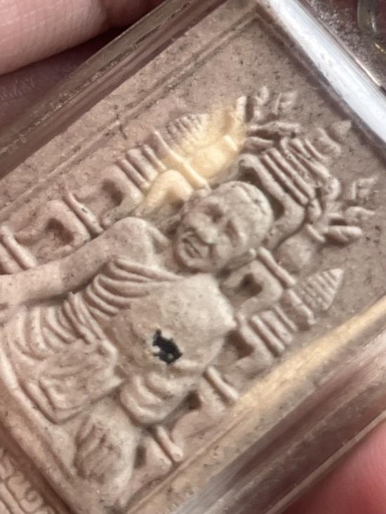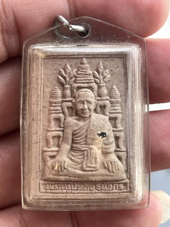 พระผงรูปเหมือนฝังพระธาตุ พระครูประดิษฐ์นวกร วัดสามร้อยยอด ประจวบคีรีขัน ปี2547 หลังโต๊ะหมู ฝั่งเม็ดแร่ด้านหน้า สวยเดิมเลี่ยมเก่า