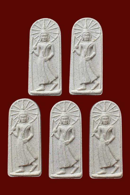 ชุด 5 องค์...พระขุนแผนชมตลาด (หนุ่มรุมรัก สาวลุ่มหลง) เนื้อผงขาวหลังฝังตะกรุดทองแดง ปี 2558 หลวงปู่เฉลิม วัดบุญนาคประชาสรรค์ จ.สมุทรสงคราม พร้อมซองเดิมจากวัด