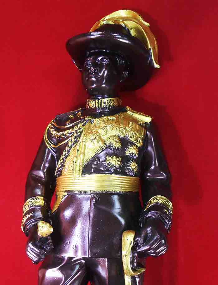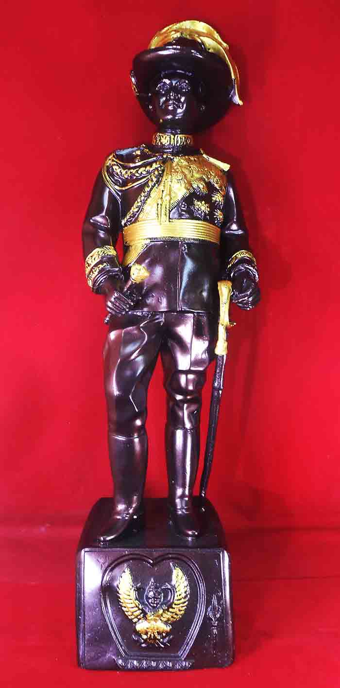 รัชกาลที่ 6 ทรงลูกเสือ ขนาดบูชา เนื้อเรซินผสมพิเศษพิมพ์สวย คมชัด สีรมน้ำตาลปิดทองที่แถบยศ ทรงยืนสูง 62 ซม. หลวงพ่อแหวน วัดเขาสูงอธิษฐานจิต