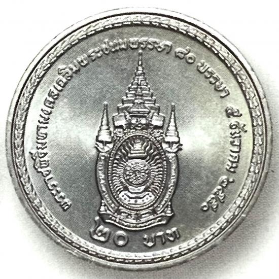 เหรียญ 20 บาทที่ระลึกพระราชพิธีมหามงคลเฉลิมพระชนมพรรษา 80 พรรษา ๕ ธันวาคม ๒๕๕๐ ยกถุง 50 เหรียญ อยู่ในถุงผ้าเดิมๆจากกรมธนารักษ์ ยังไม่เคยเปิดปากถุง สวยงาม หายาก น่าสะสม