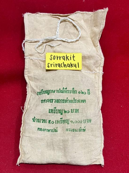 เหรียญ 20 บาทที่ระลึก 120 ปีกระทรวงการต่างประเทศ ยกถุง 50 เหรียญ อยู่ในถุงผ้าเดิมๆจากกรมธนารักษ์ ยังไม่เคยเปิดปากถุง สวยงาม หายาก น่าสะสม