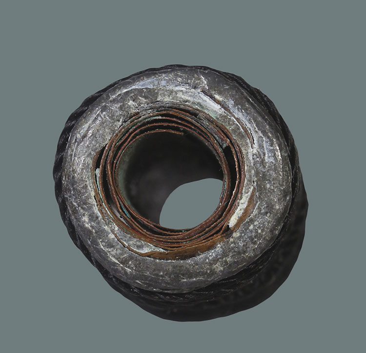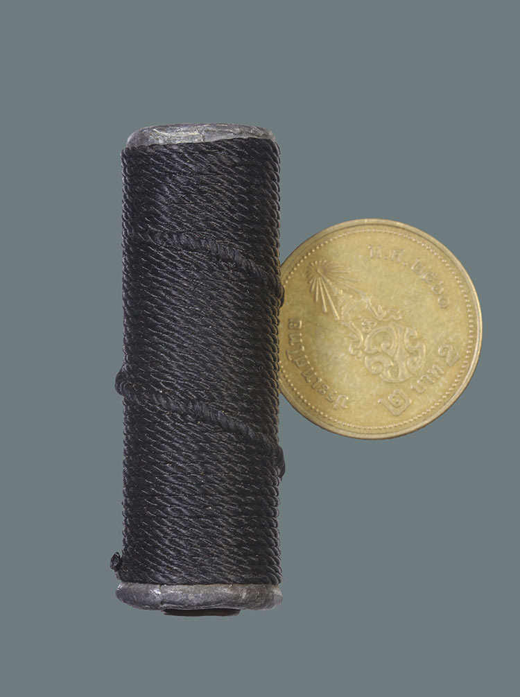 วัดใจ**ตะกรุดถักเชือก เนื้อทองแดง+ตะกั่ว ยาว1.7 นิ้ว ไม่ทราบที่....ตามสภาพครับ |