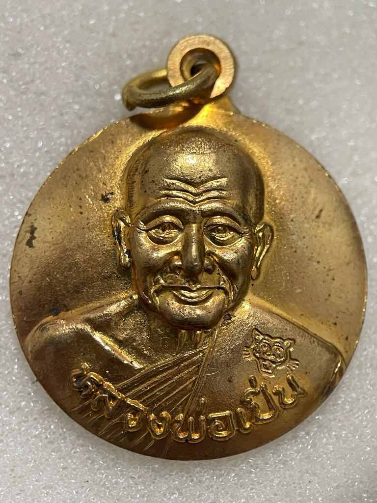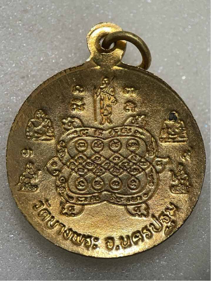 150.- ems เหรียญแอ่งกะทะ หลังพญาเต่าเรือน หลวงพ่อเปิ่น วัดบางพระ จ.นครปฐม ปี 2539 เนื้อกะไหล่ทอง (ตอกโค๊ด"หน้ากากเสือ") สภาพสวยเดิม