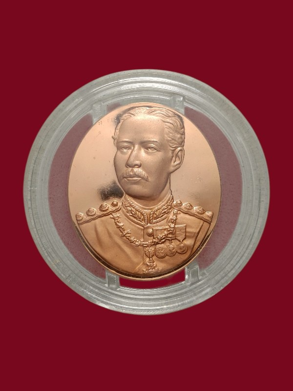 เหรียญรัชกาลที่ 5 สมาพันธ์แรงงานรัฐวิสาหกิจสัมพันธ์ พิธีพุทธาภิเษก ณ วัดพระแก้ว ปี พ.ศ. 2544 เนื้อทองแดงขัดเงา พร้อมตลับเดิม