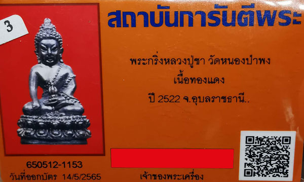พระกริ่งหลวงปู่ชา วัดหนองป่าพง รุ่นแรก เนื้อทองแดง ปี2522 จ.อุบลราชธานี + บัตรG-pra สภาพสวยเดิมค่ะ |
