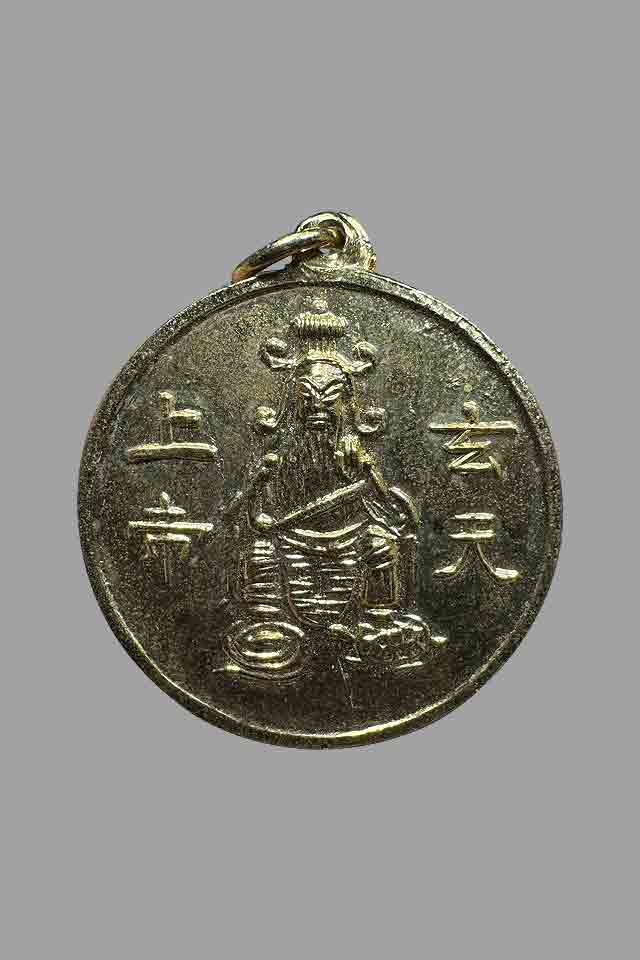 เหรียญเทพเจ้าตั่วเหล่าเอี๊ย ศาลเจ้าพ่อเสือเสาชิงช้า พิมพ์ใหญ่ (เนื้อกะไหล่ทอง ) กรุงเทพ |