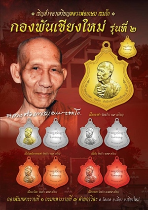 < วัดใจ > พระเหรียญกองพันเชียงใหม่สอง หลวงพ่อเกษม เขมโก สุสานไตรลักษณ์ลำปางเนื้อทองแดงหมายเลข 2298 ปี 2559 สภาพสวยๆพร้อมกล่องเดิมๆครับเท่าไรเท่านั้น |
