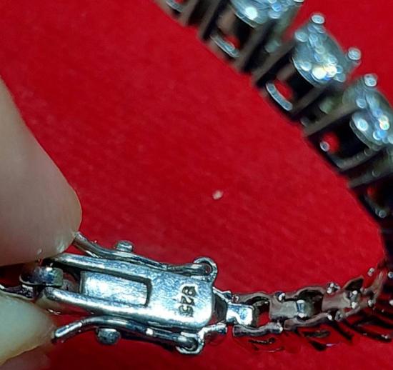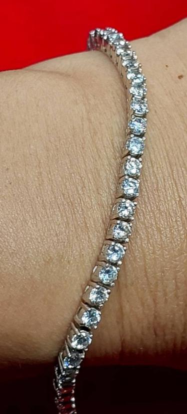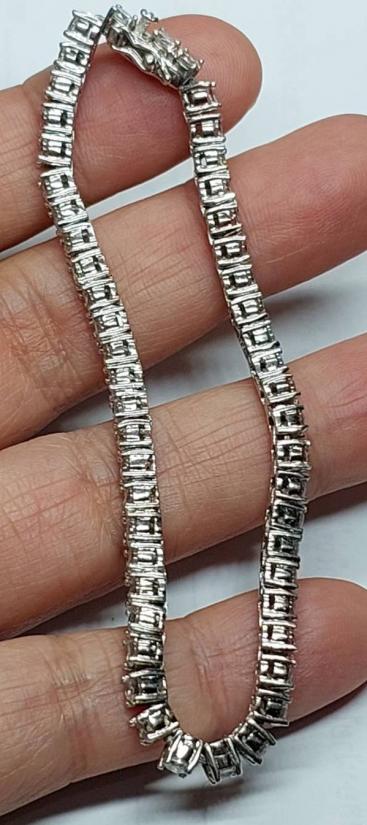 สร้อยข้อมือเพชรแถว ฝังเพชรRound-CZ เงิน 925 งานแบรน Made in Japan ยาวสร้อย: ประมาณ 18 ซม. นน.11.8 กรัม