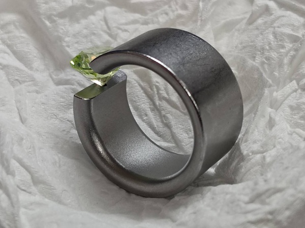 แหวนดีไซน์โดดเด่น อัญมณีสังเคราะห์ถูกจัดวางอย่างงดงาม ยื่นออกมาจากด้านข้างของตัวแหวน เมื่อสวมลงบนมือ อัญมณีจะอยู่ระหว่างนิ้วสองนิ้ว บิดแหวนไปรอบๆ อัญมณีก็จะโดดเด่นขึ้นมา แหวนวงนี้สามารถสวมใส่ได้หลายท่า ราวกับนักกายกรรมตัวจริง!