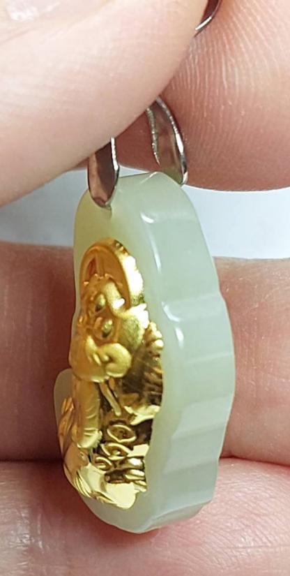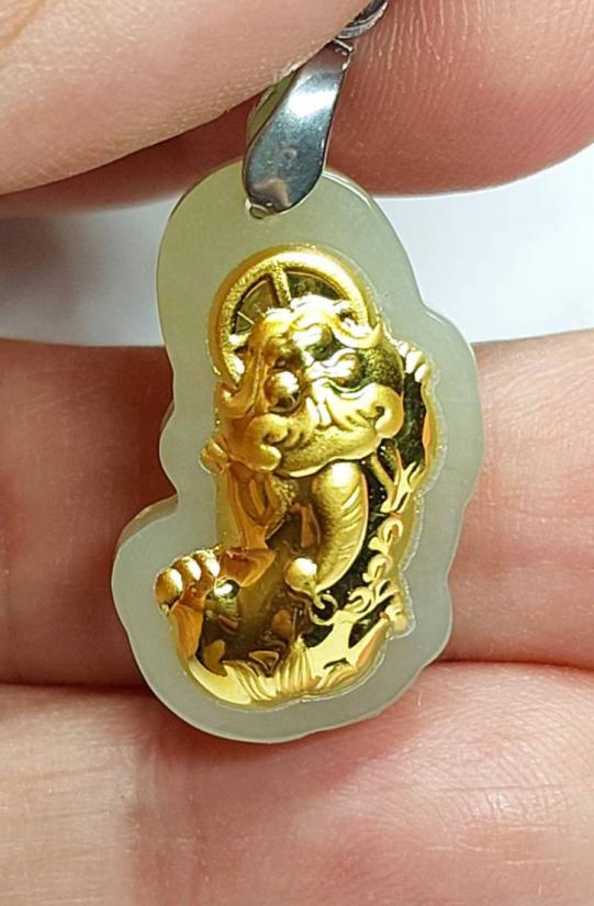 จี้หยกปี่เซียะ"หยกเหอเถียน"เคลือบทองคำแท้ 99.9% สูง 1 นิ้ว
