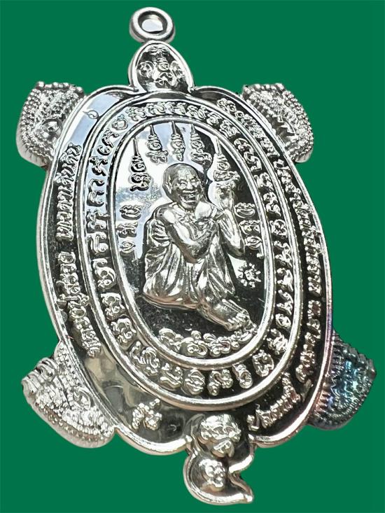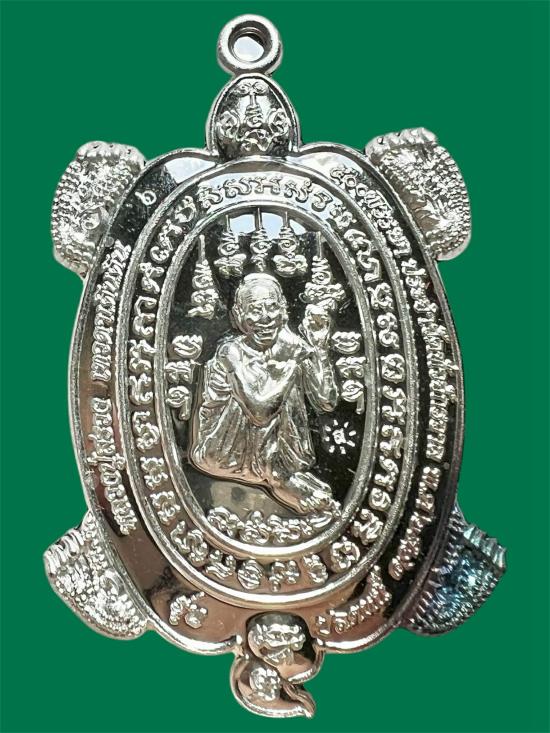 เหรียญพญาเต่าเรือนเนื้อเงิน ย้อนยุค รุ่นแรก หลวงปู่สรวง เทวดาเดินดิน วัดเวฬุวัน ปี 62 น้ำหนัก18.7กรัม