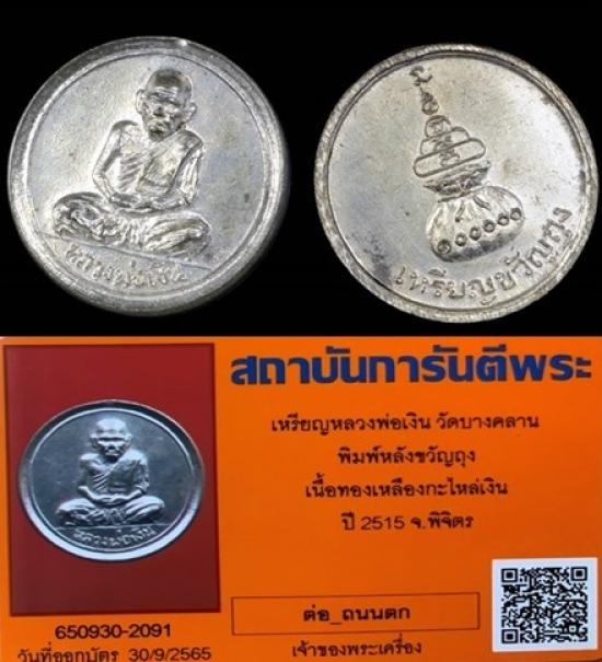 หลวงพ่อเงิน*เหรียญขวัญถุง*ปี15*กะไหล่เงิน*สวยระดับแชมป์ครับ.สภาพสวยๆ กะไหล่เดิมๆจมูกโด่ง...งดงามจริงๆครับเหรียญนี้... พร้อมเลี่ยมพาสสติกกันน้ำรักษาผิวใว้ครับ มาพร้อมบัตรการันตี แท้แน่นอนครับท่าน สวยสุดๆหาสภาพแบบนี้ยากมากๆ ผ่านมา50กว่าปี ผิวสวยขนาดนี้ บรรยายด้วยภาพครับท่าน
