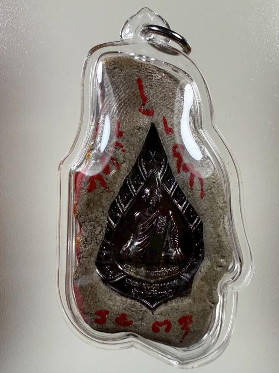 300... เศียรพ่อแก่ฤาษี พระอาจารย์อึ่ง วัดเซิงหวาย จ.กรุงเทพ หลังฝั่งเหรียญหลวงพ่อผลฯ เนื้อผงมวลสารเพ้นท์สี จารยัน พร้อมเลี่ยม |