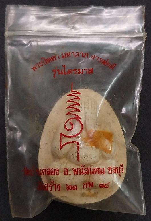 ปิดตาวัดบ้านคลอง รุ่นสารพัดดี พิมพ์จัมโบ้ เนื้อเหลือง(ผงเกสร) ฝังตะกรุด ปี2538